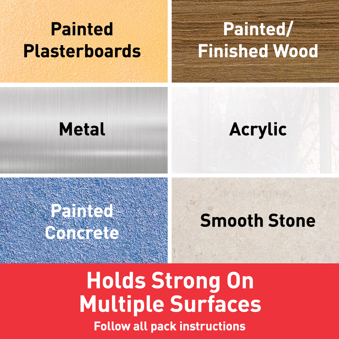 Multi-Surface Compatibility: Works on metal, wood, acrylic, tiles, glass, and painted walls with strong double sided foam grip.