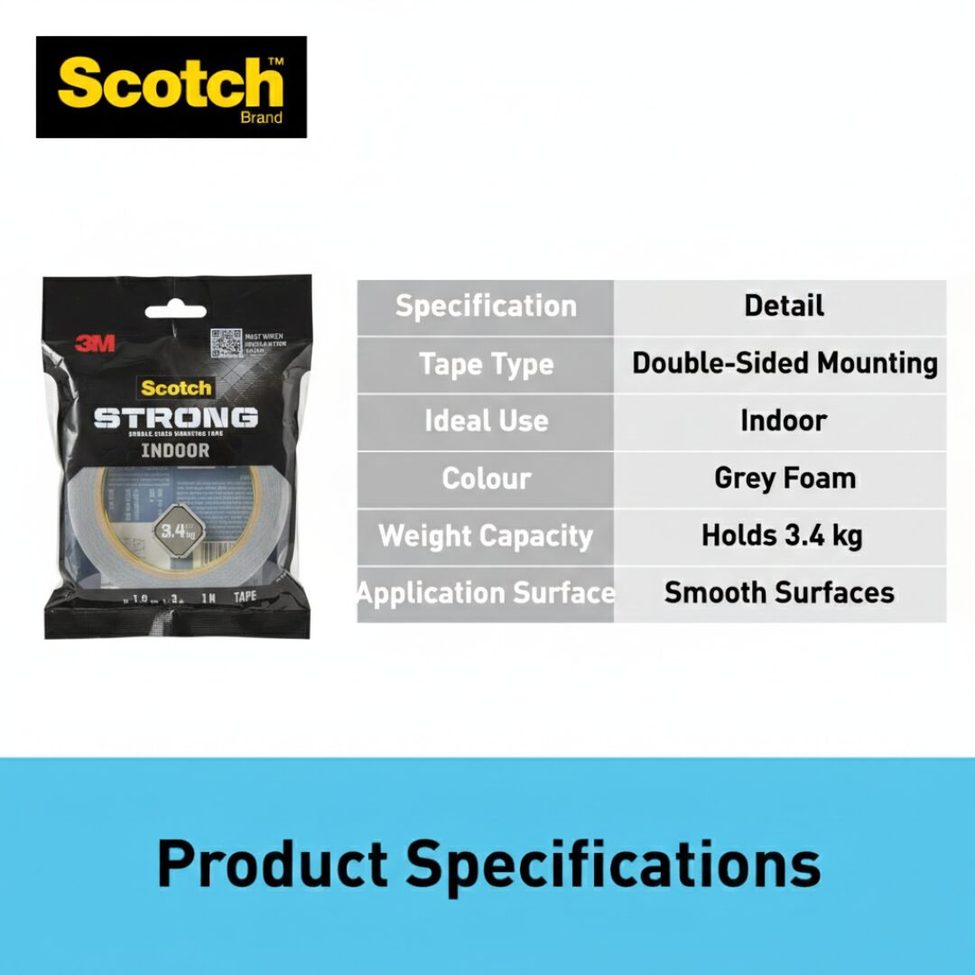 3M Scotch Strong Double Sided Mounting Tape Indoor 1.8cm x 3m