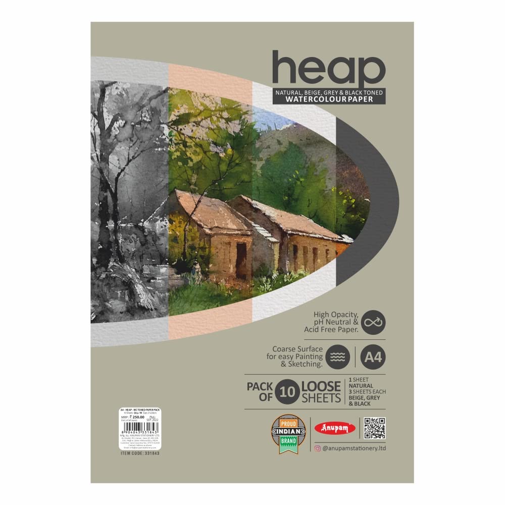 Anupam heap 4 colors watercolour paper A4 size There are 1 sheet natural, 3 sheets each ( beige, grey & black ) 10 sheet