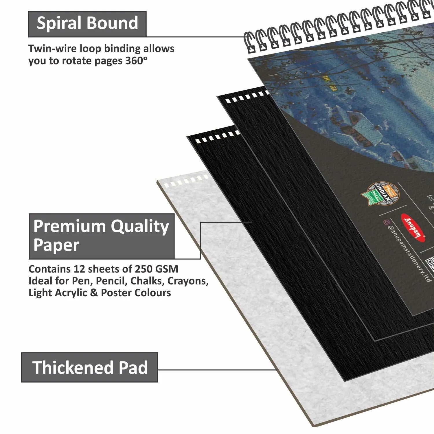 Anupam Pupil Black Toned Watercolour Paper Wireo Book 250 GSM