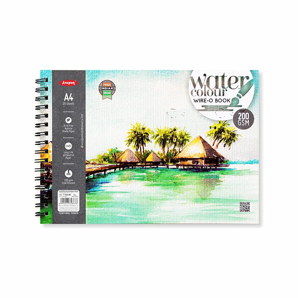 Anupam Watercolour Wire-O Book 200 GSM-A3 Premium Cold Pressed Textured Paper