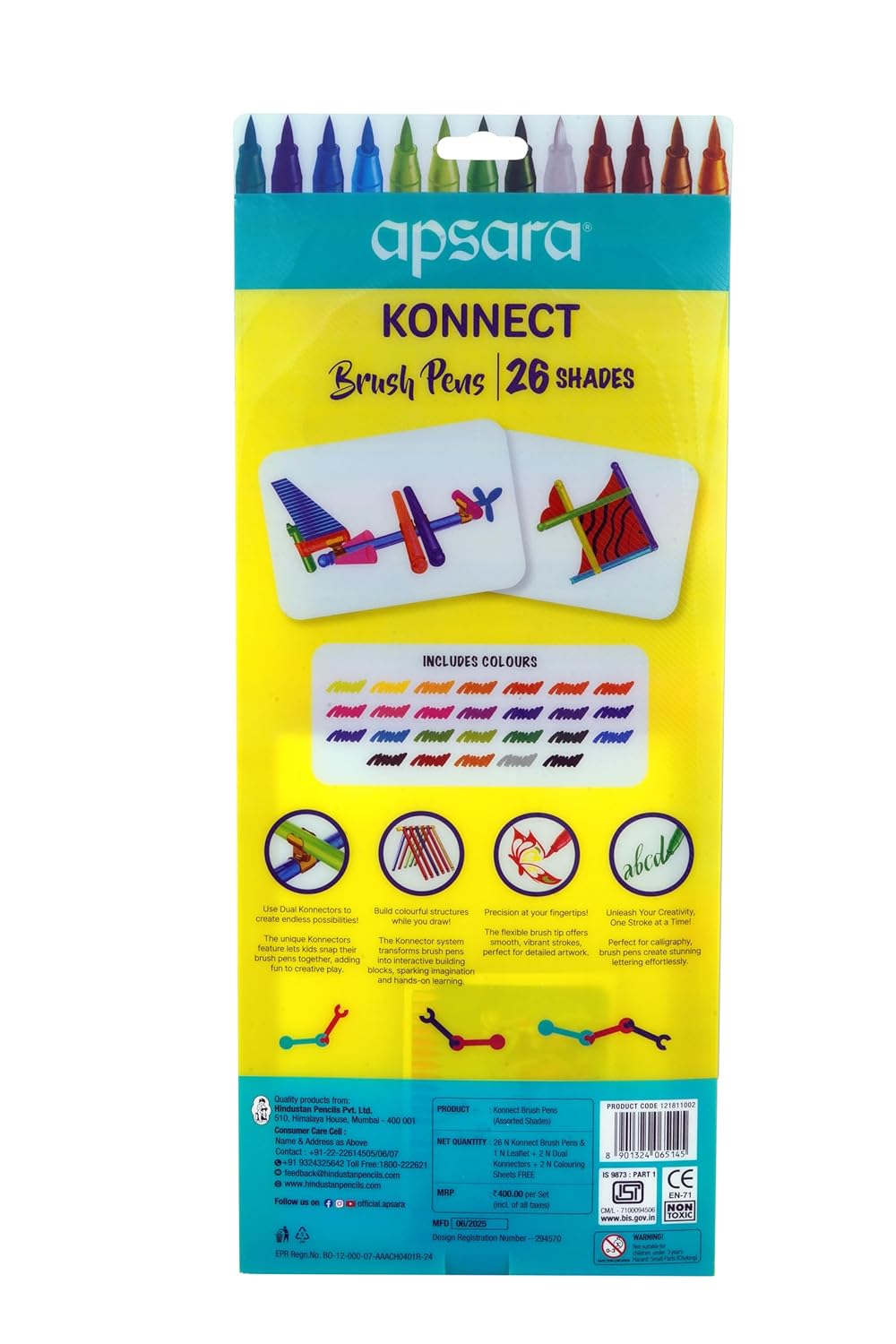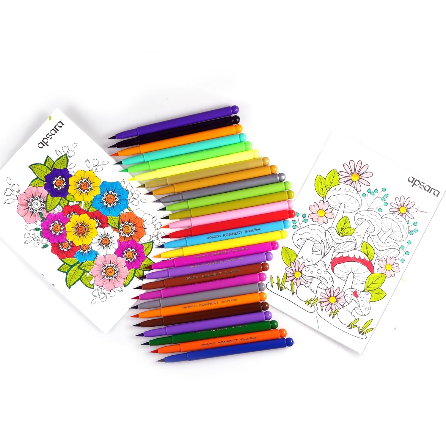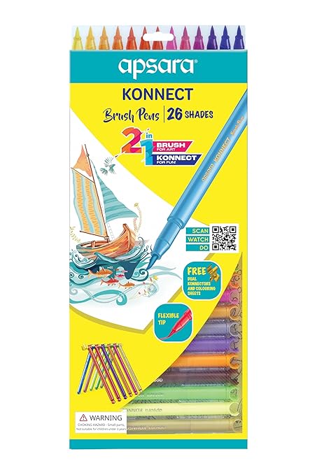• Apsara Konnect Brush Pens – 26 Shades 2-in-1 are premium dual tip brush pens designed for artists, designers, and lettering enthusiasts.