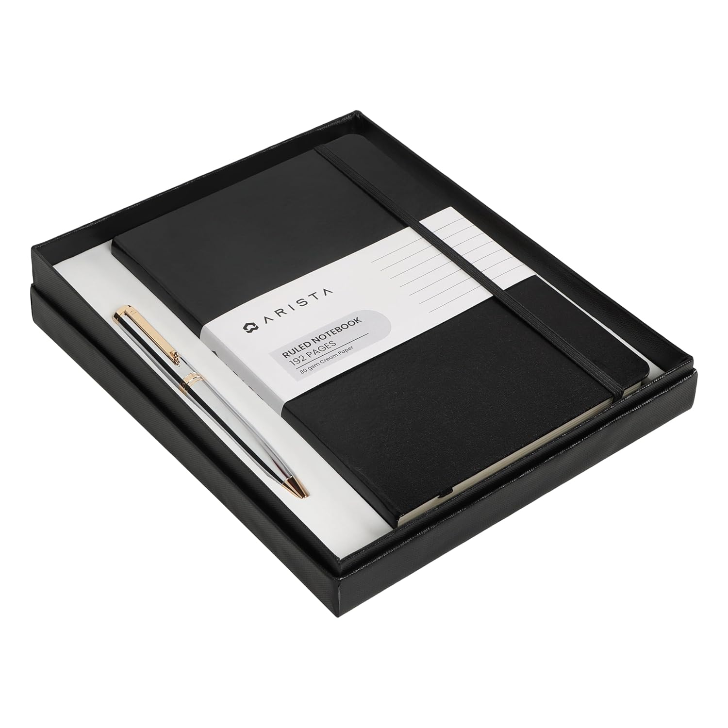 Arista | Ballpoint Pen | Chrome With Gold Trim | With A5 Note Book