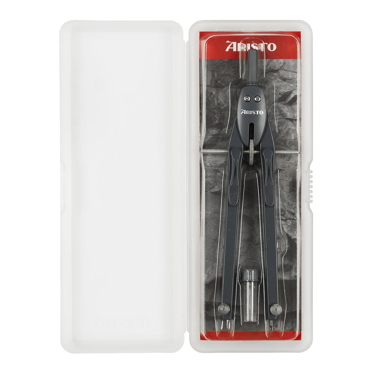 - Contents – Aristo BTS spring bow compass and 1 box of 2 Refills and 1 piece | Replacement needle in a robust transparent case