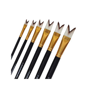 Special 7-piece set includes: 2 fan brushes, 2 angular brushes, 1 filbert brush, 1 deerfoot stencil brush, and 1 detail brush.