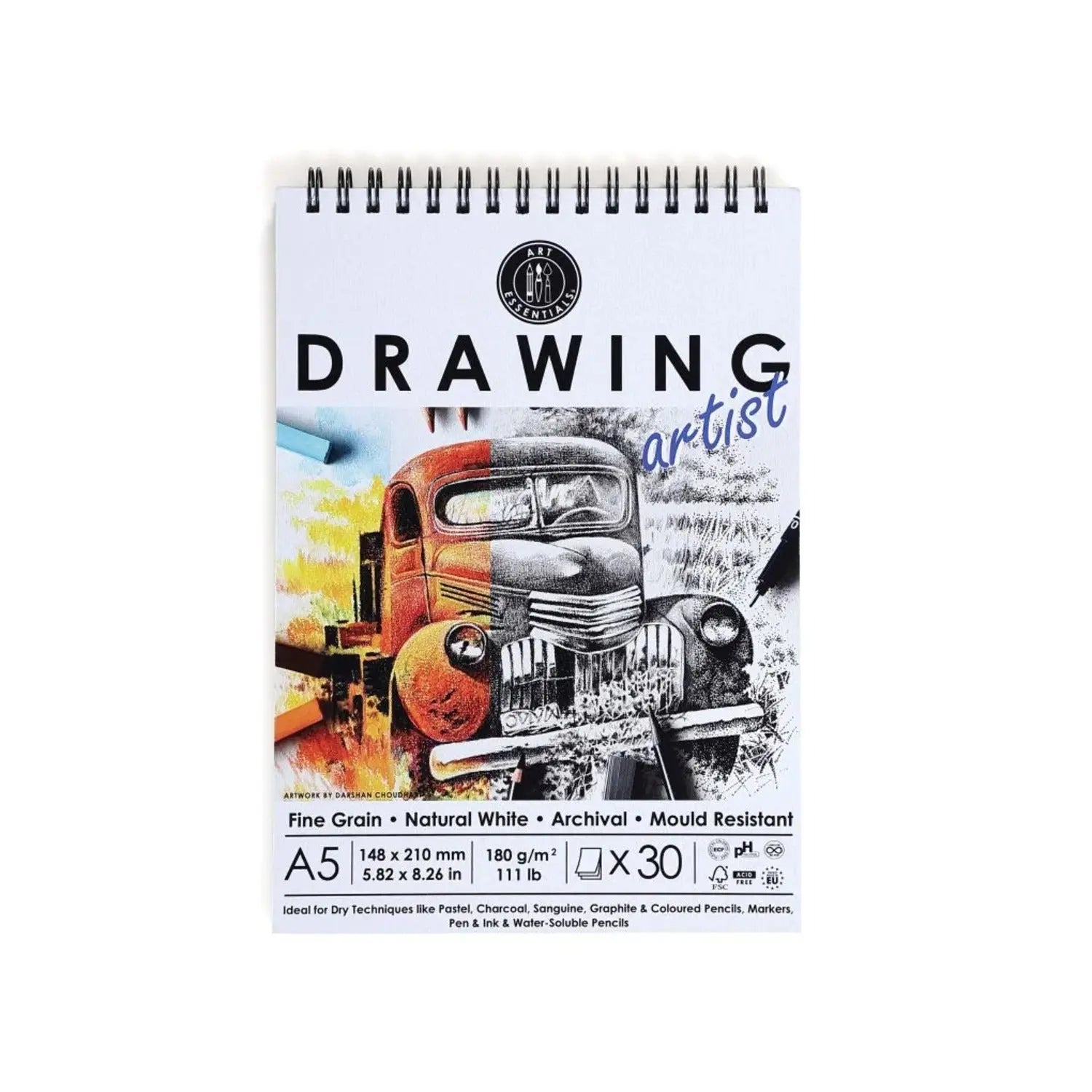 Art Essentials Artist Drawing Paper Natural White Fine Grain 180GSM – Spiral Pad