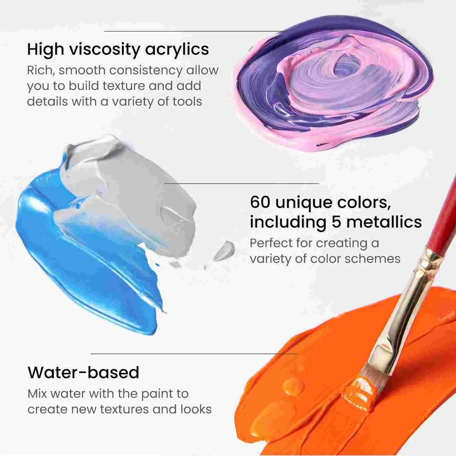 🖌️ High Viscosity & Smooth Flow – Thick, creamy consistency allows you to build textures with a palette knife or achieve precise details with fine brushes.