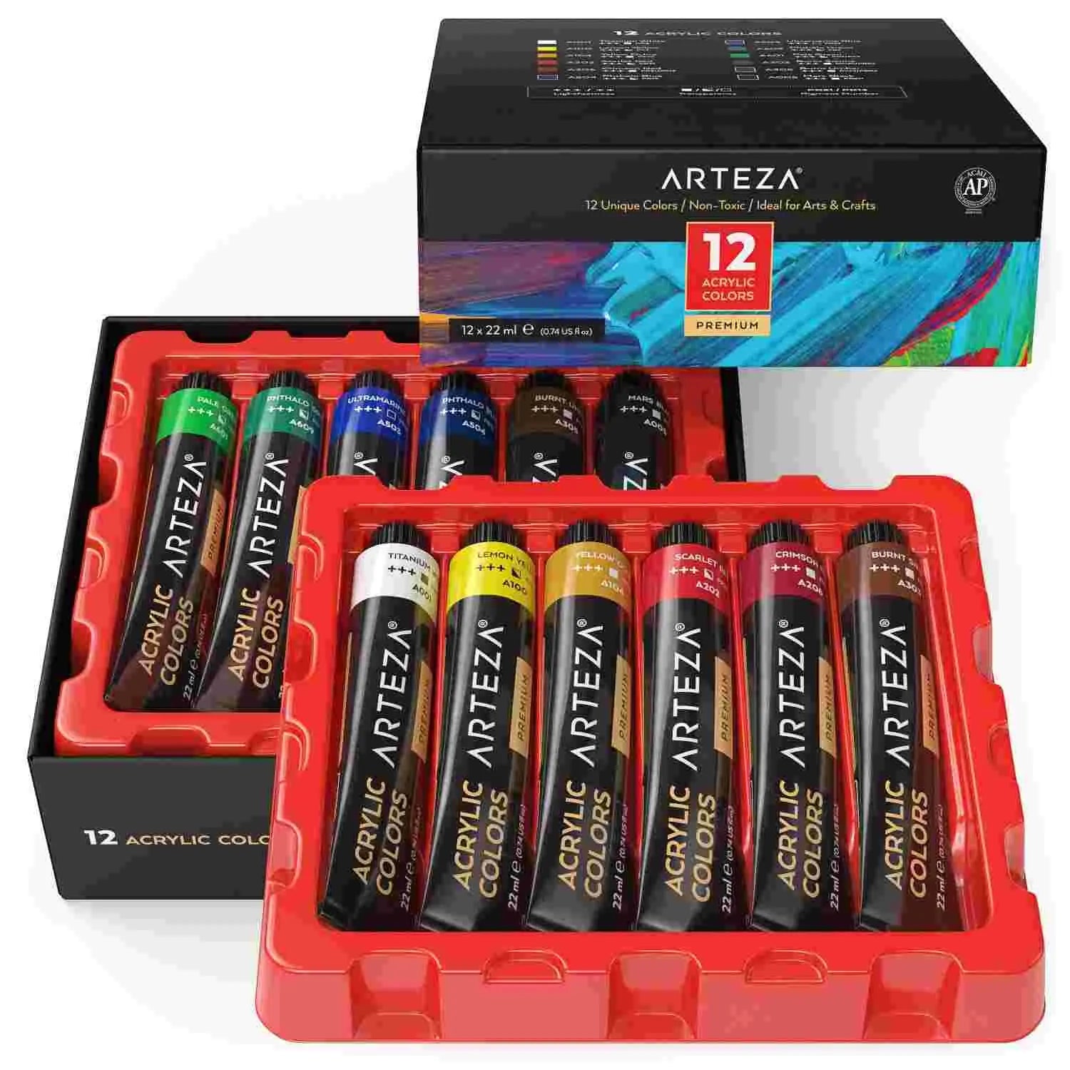Arteza Acrylic Paint Assorted Colours Set with Storage Box