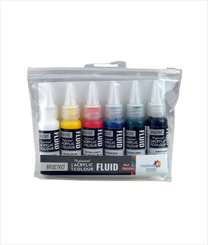 Brustro Professional Artists Fluid Acrylic 20 ml Primary Colours Pack of 5 + 1 Free (Titanium White, Yellow Mid AZO, Napthol Scarlet, Phthalo Blue, Phthalo Green and Carbon Black)