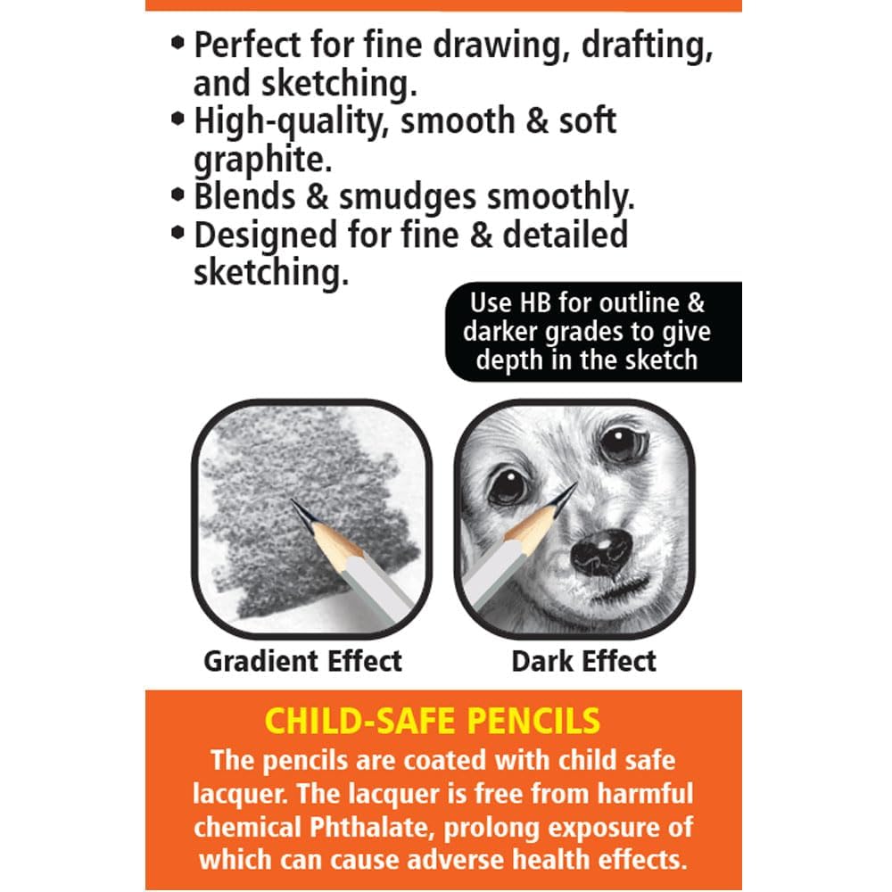 • Child-safe drawing pencils, suitable for students, hobby artists, and professionals