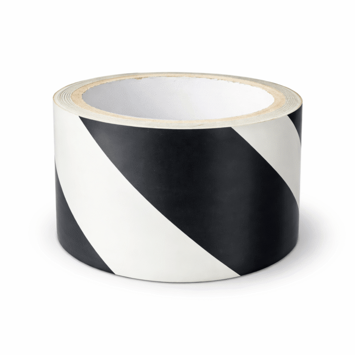 • High-contrast black and white hazard tape designed for clear safety marking and visual guidance