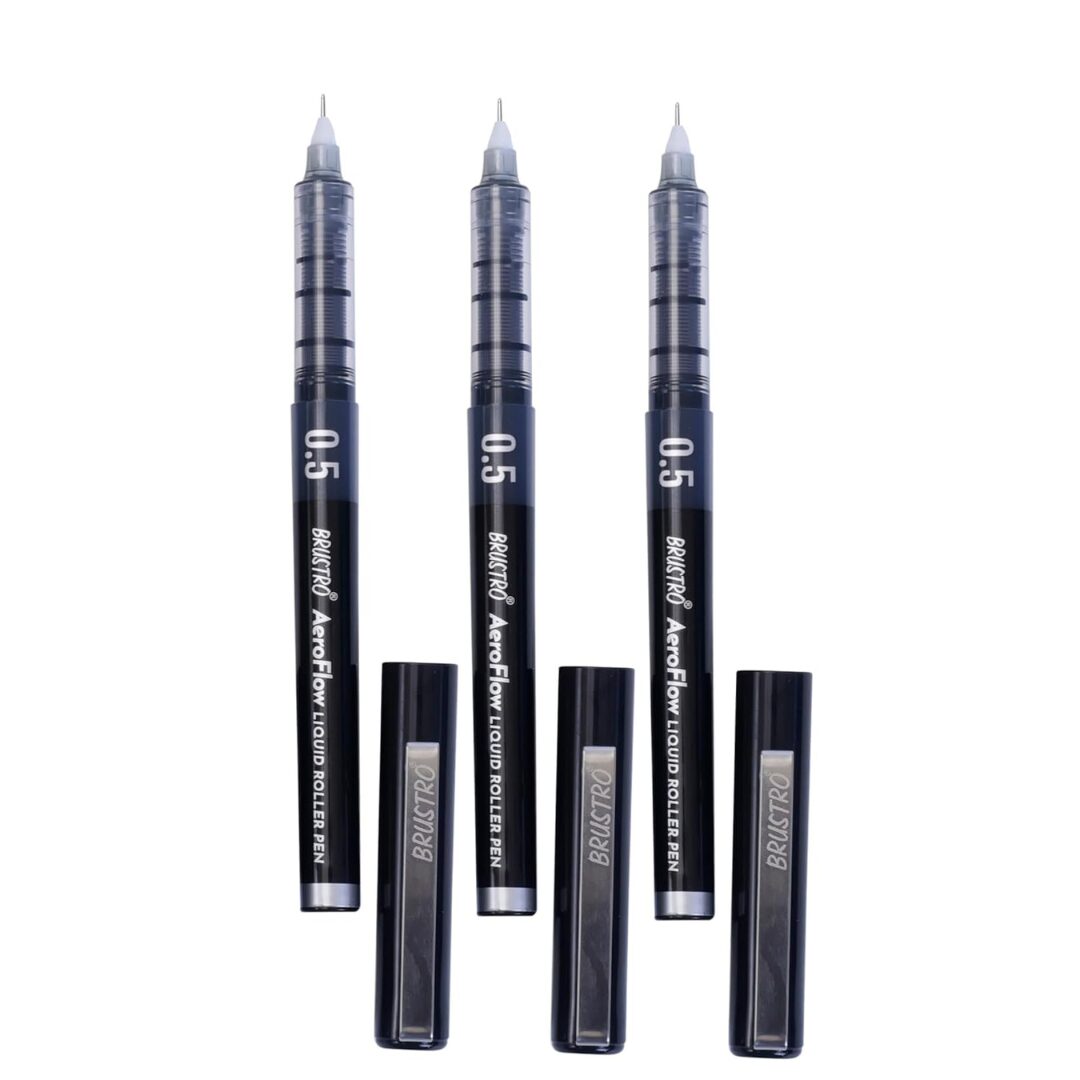 BRUSTRO AeroFlow Liquid Ink Rollerball Pens | Black | 0.5mm, Micro Tip | Pack of 3