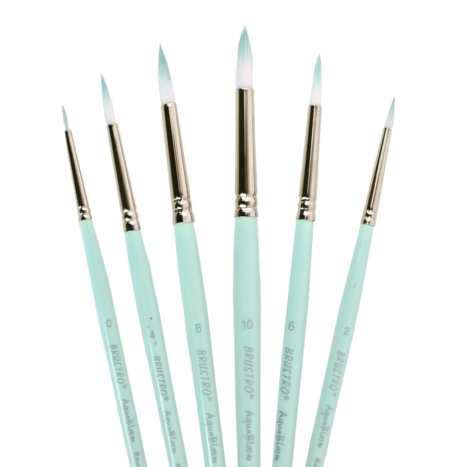 BRUSTRO AquaBloom Artist’s Paint Brushes | Round | Set of 6 – Sizes (0, 2, 4, 6, 8, 10)