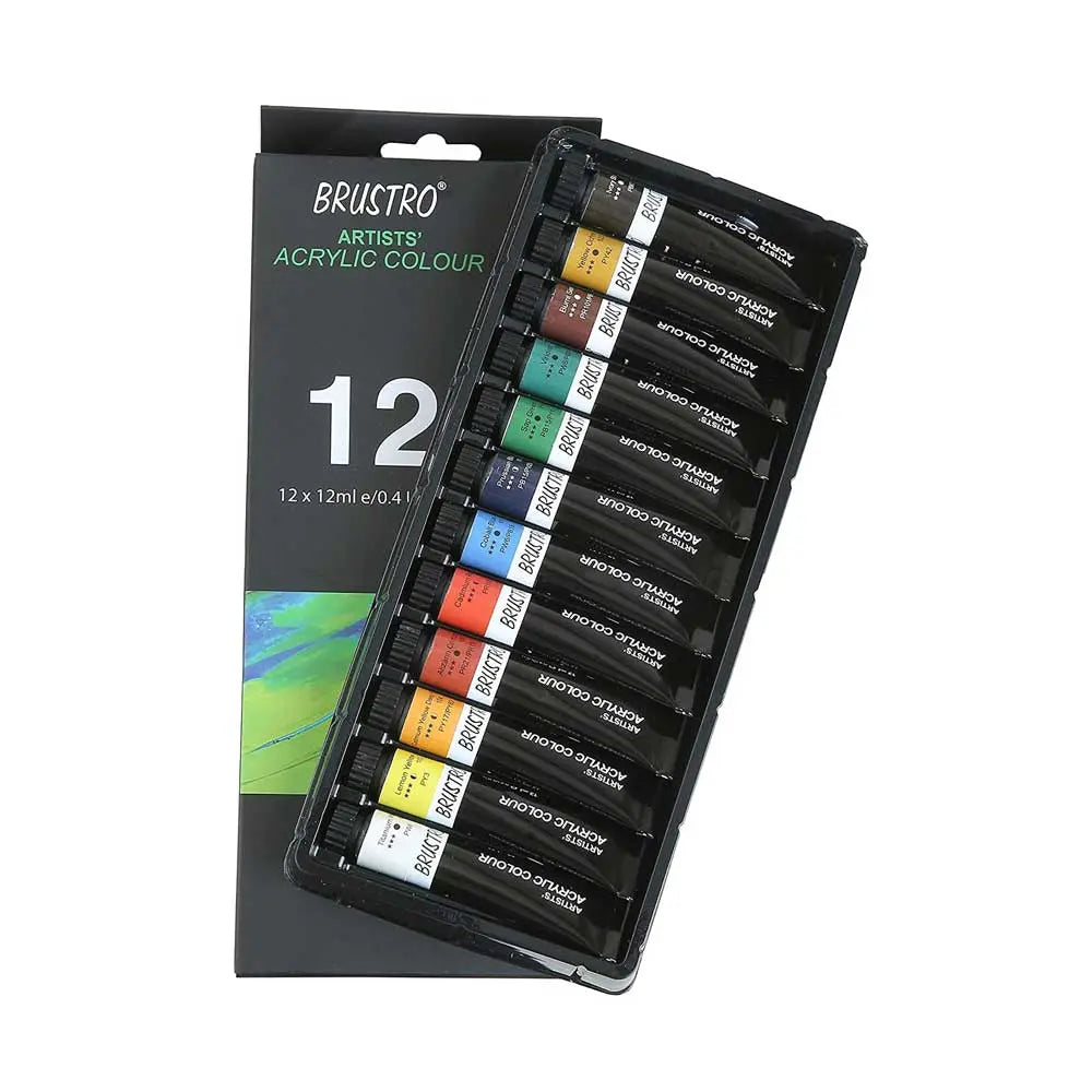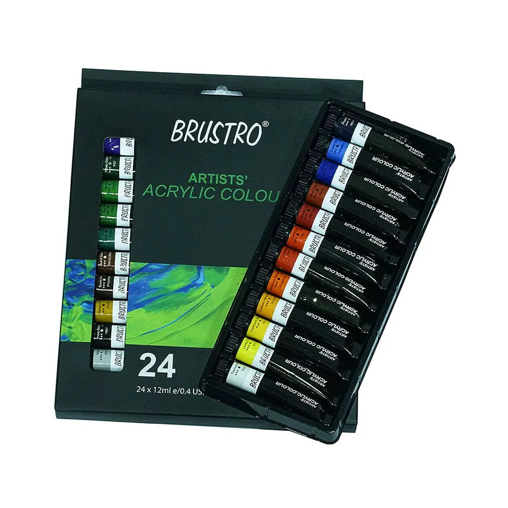Premium Acrylic Paint Set for Artists: Brustro Artist’s Acrylic Colours deliver rich pigmentation and bright, clean tones ideal for acrylic painting on canvas, paper, and cardboard.