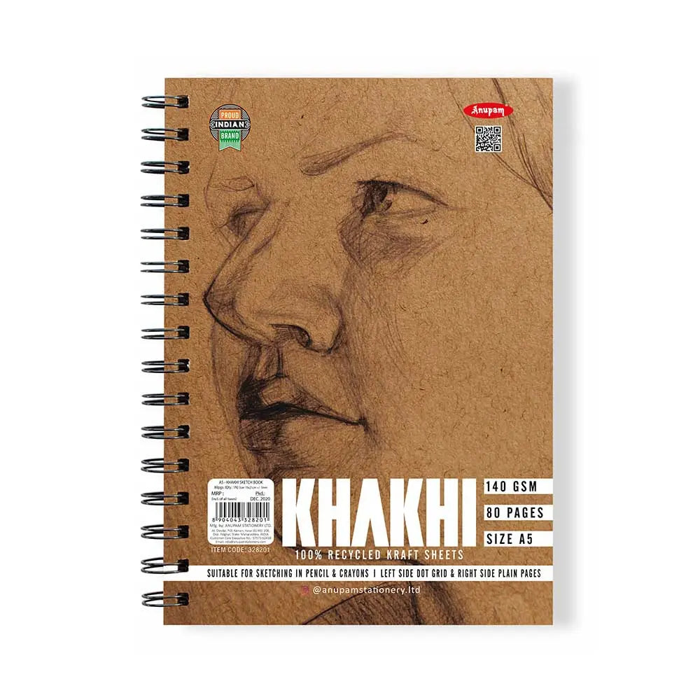 Anupam Khaki Sketchbook – Wireo book – 140 GSM Cartridge Paper