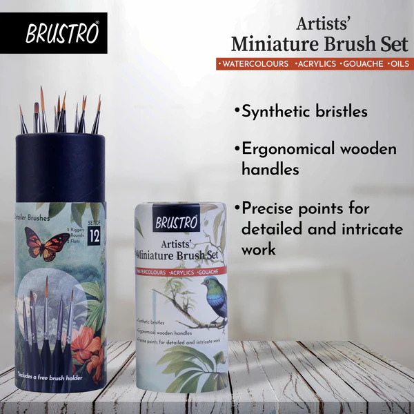 BRUSTRO Artists’ Miniature Precision Brushes – Set of 12 is the perfect choice for artists who need ultra-fine detailing. Designed for precision artwork, miniature painting, and high-accuracy strokes, this brush set ensures smooth and controlled application in watercolour, acrylic, gouache, and ink artworks.