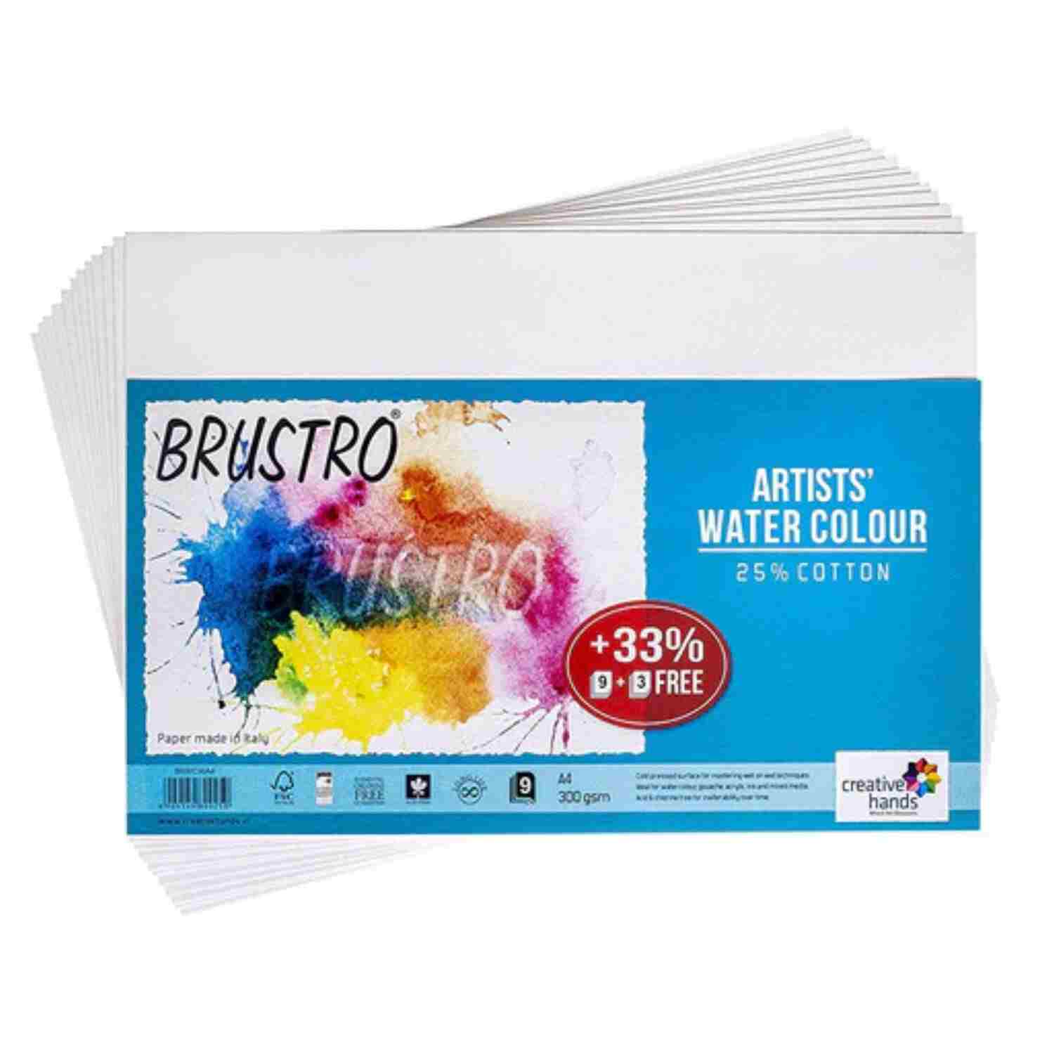 BRUSTRO Artists Watercolour Paper | 300 GSM 25% Cotton, Cold Pressed