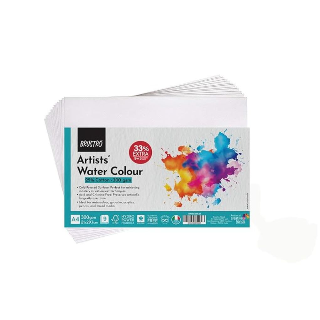 Professional Watercolour Paper Pad: Brustro Artists’ Water Colour Paper made with 25% cotton and 300 GSM thickness, ideal for serious artists and art students.