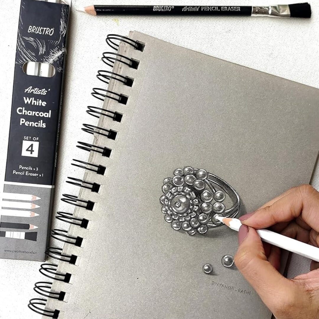 Includes 3 white charcoal pencils + 1 precision pencil eraser for complete charcoal drawing control