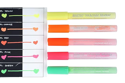 • Premium Brustro fluorescent acrylic markers designed for graffiti, DIY art, and creative projects