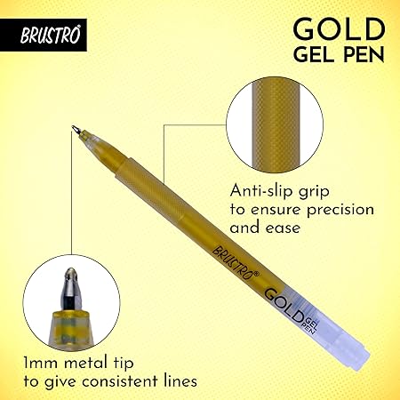 1 review for Brustro Gold Gel Pen Pack of 12 1mm Metal Tip | Metallic Gel Pens for Art & Writing
