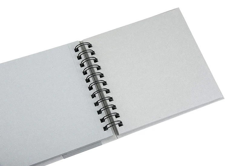 Spiral wiro binding offers a flat-lay surface for comfortable sketching