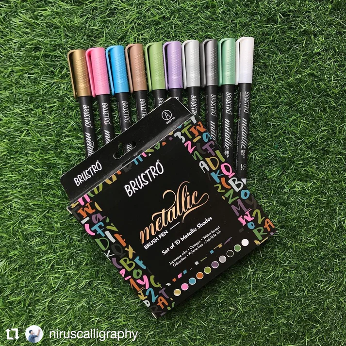 Brustro Metallic Brush Pen Set of 10 -Soft Brush Tip for Calligraphy, Hand Lettering, Colouring, Scrapbooking, Card Making