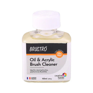 Brustro Oil and Acrylic Brush Cleaner are Ideal for cleaning brushes, palette knives, palettes, which are coated with color (oil or acrylic), dry mediums, and varnishes