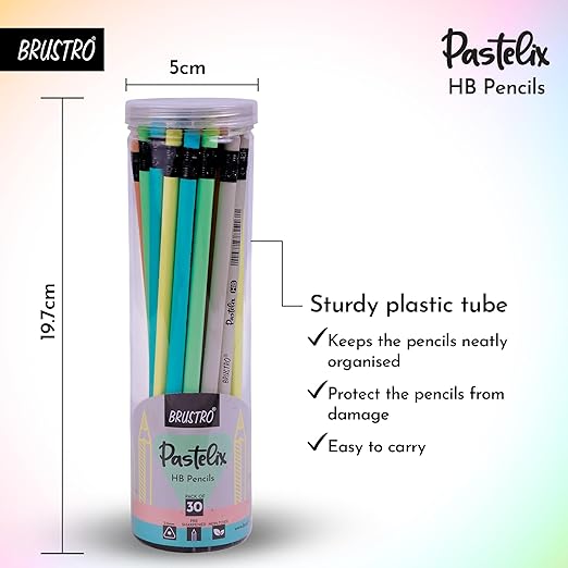 Brustro Pastelix HB Pencils Pack of 30 | Pre-Sharpened HB Pencils for Writing & Drawing
