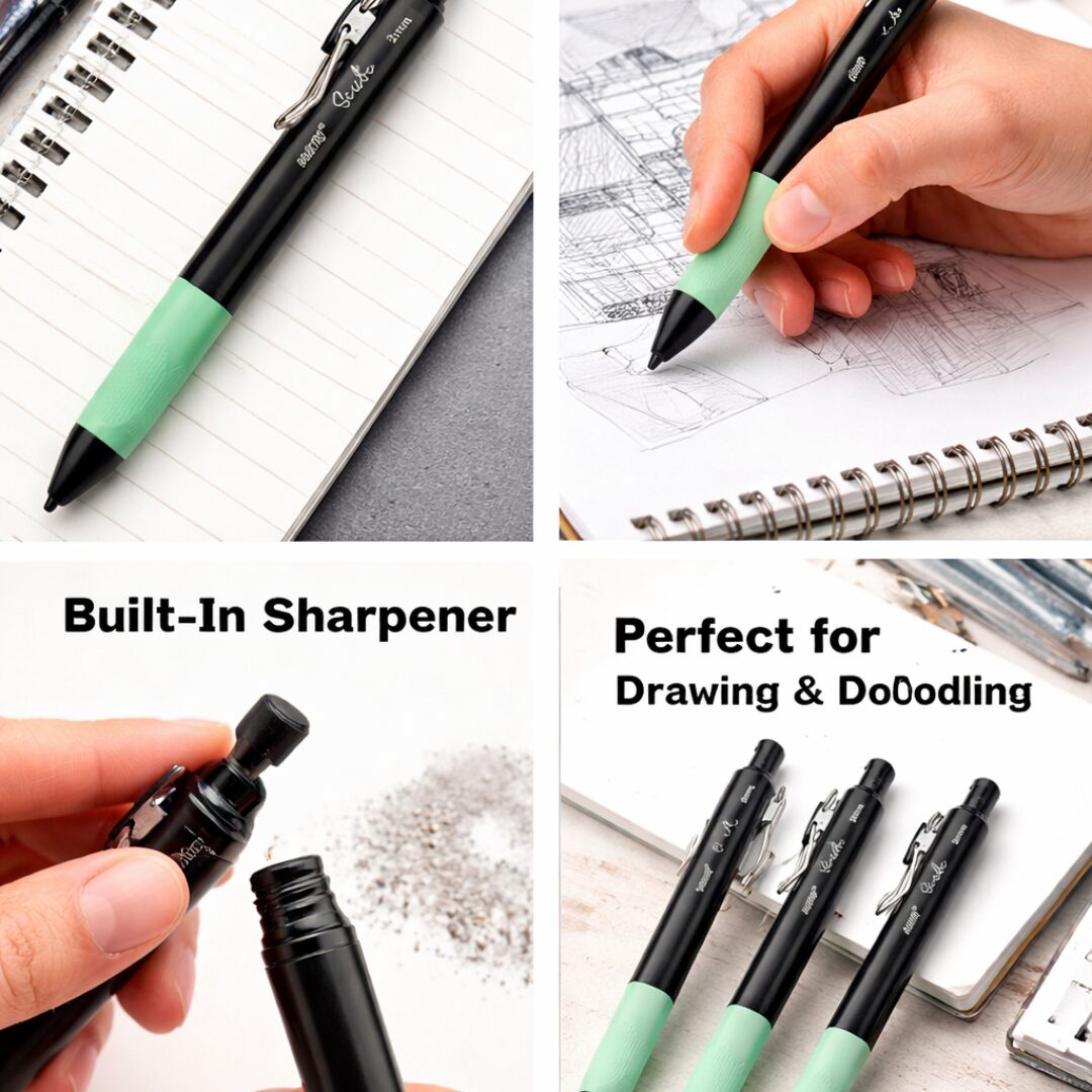 Built with a durable 2mm lead, this mechanical pencil for drawing and writing offers the perfect balance of strength and precision. The ergonomic grip ensures comfort during long sessions, while the built-in sharpener keeps your lead sharp at all times.