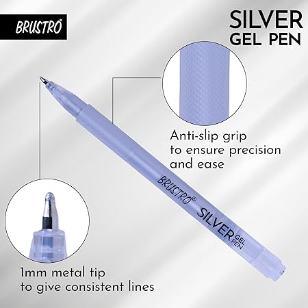 Designed for precision and comfort, each pen features a 1mm metal tip that ensures clean lines and consistent ink flow. Whether you’re working on illustrations, journaling, or decorative writing, these metallic gel pens provide excellent control and a smooth writing experience.With their rich silver finish and easy handling, the Brustro gel pen set is ideal for adding highlights, outlines, and creative details to your projects.