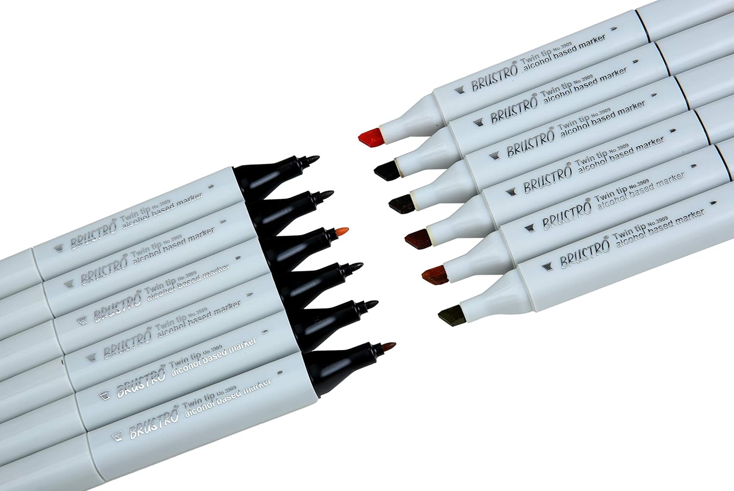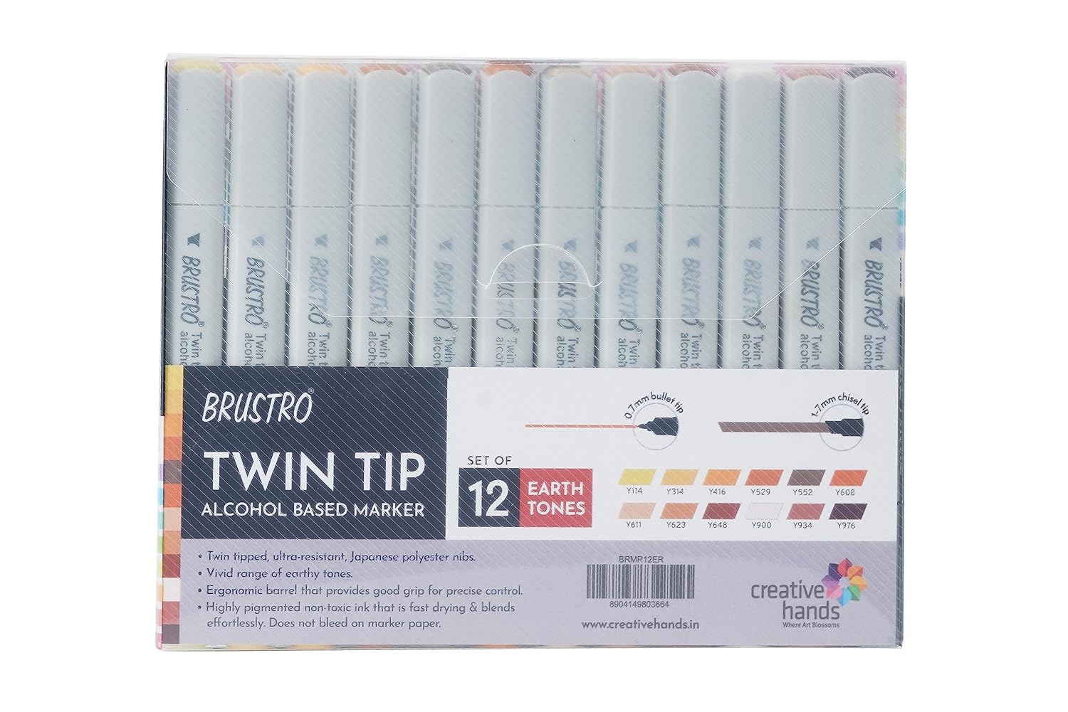 Brustro Twin Tip Alcohol-Based Marker Set of 12 Earth Tones
