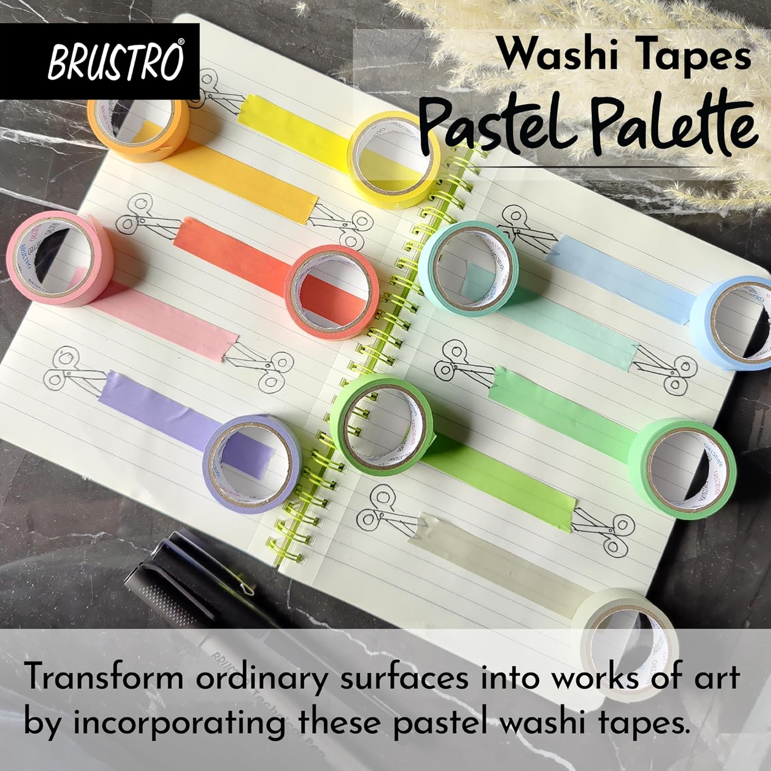 Premium Brustro Pastel Washi Masking Tapes designed for crafting, journaling, décor & DIY projects.