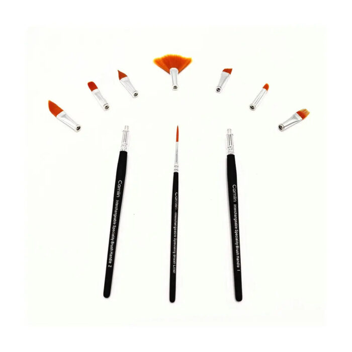Camel Interchangeable Specialty Brush Set, designed for versatility and convenience. Perfect for poster, watercolor, and acrylic painting, this innovative set is ideal for artists of all levels, offering 1 liner brush handle and 7 interchangeable specialty brush heads.