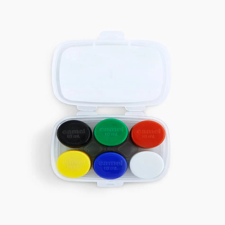 - Camel Poster Colour Set of 6 includes vibrant 10 ml shades with a free mixing palette for easy blending.