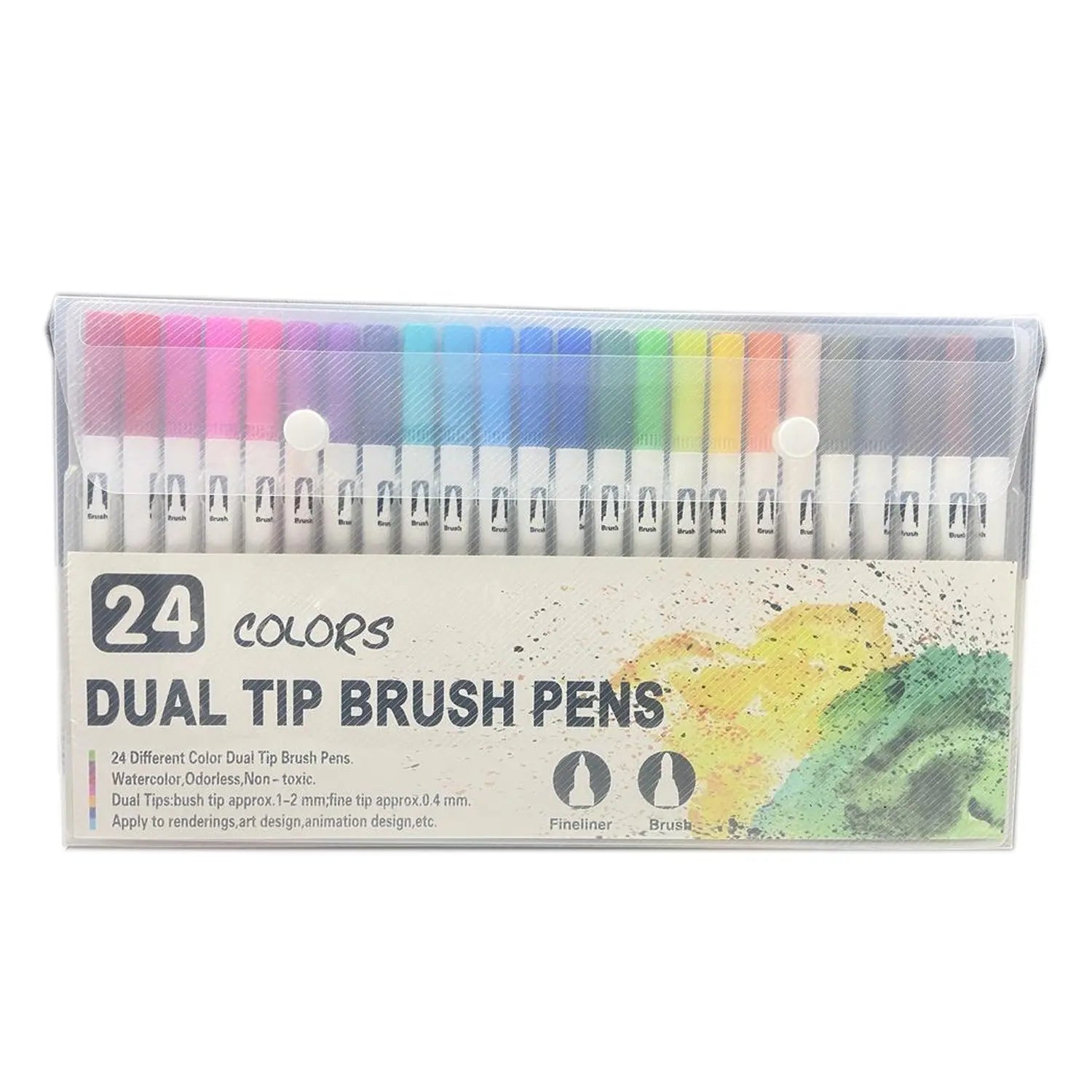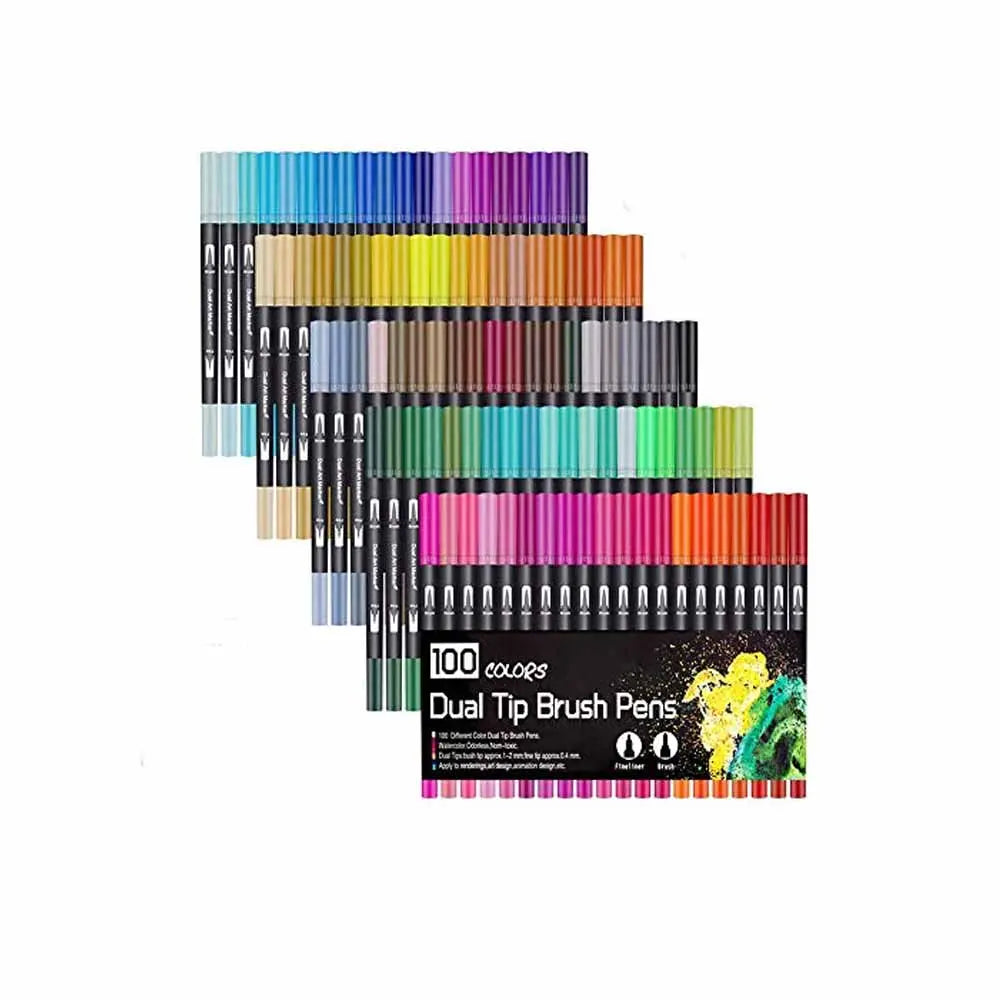 So you get both colored brush markers and colored fine liners pens, which are good art pens for kids and adults
