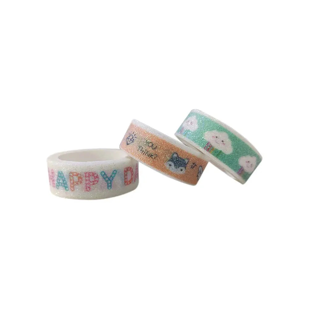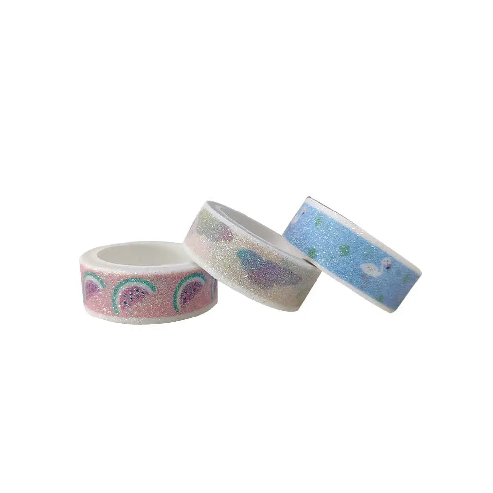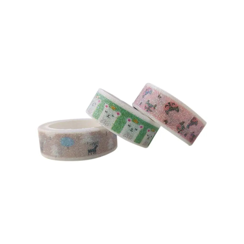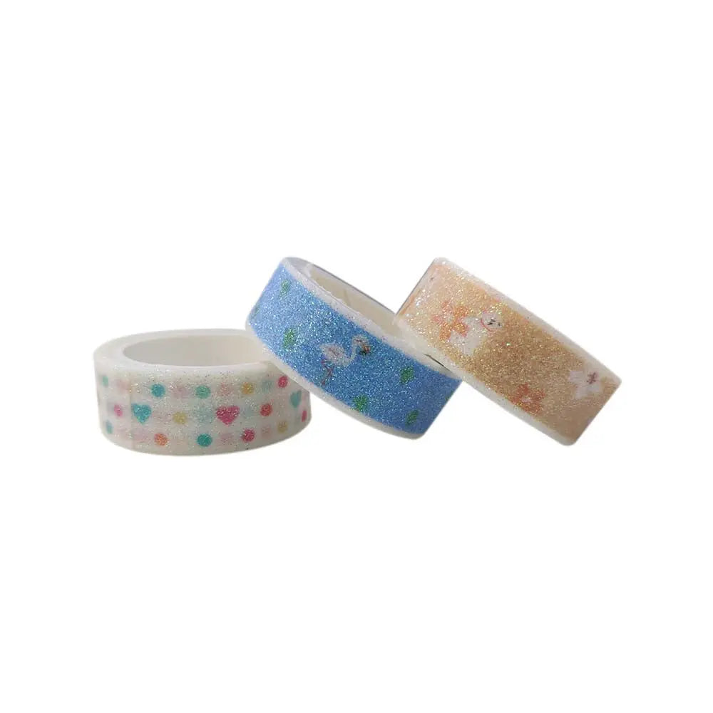 Set of 3 Colorful Adhesive Glitter Printed Tape Rolls for Decorative Purposes