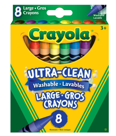 Ultra Clean Washable Crayons for Kids: Crayola Ultra Clean Washable Large Crayons easily wash off from skin, clothes, and walls, making them perfect washable crayons for toddlers and kids.
