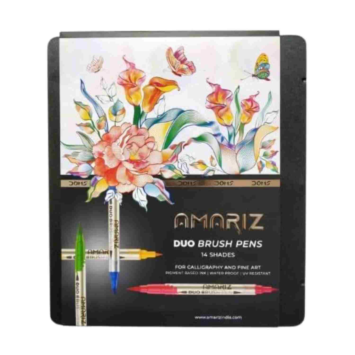 Doms Amariz Duo Brush Pens (14 Shades) (Soft + Hard Tip) (Tin Pack)