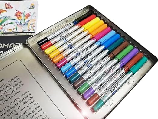 The Doms Amariz Duo Brush Pens 14 Shades Set combines precision fine liner control with flexible brush lettering performance, making it an essential dual tip brush marker set for artists, students, hobbyists, and creative professionals.