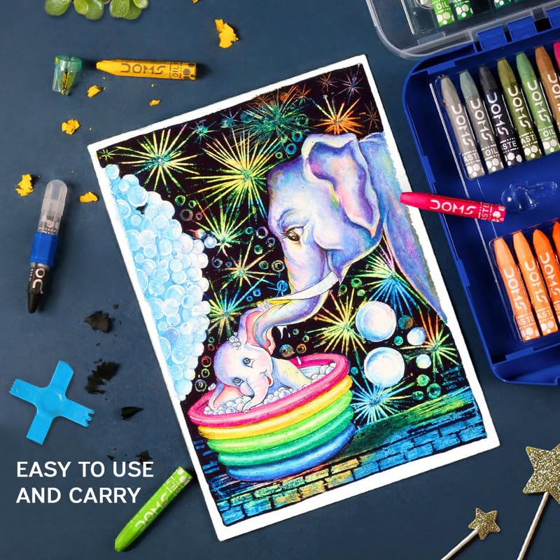 Doms Jumbo Oil Pastel Set – Non-Toxic Hexagonal Crayons in Plastic Carry Case