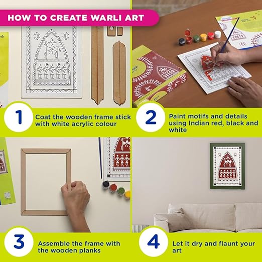 This kit is widely used as a Warli art kit for beginners, DIY painting kit for school projects, and craft kit for home decor and gifting, making it perfect for creative learning and decoration.This is one of the best Warli art kits for beginners to create traditional wall decor at home.