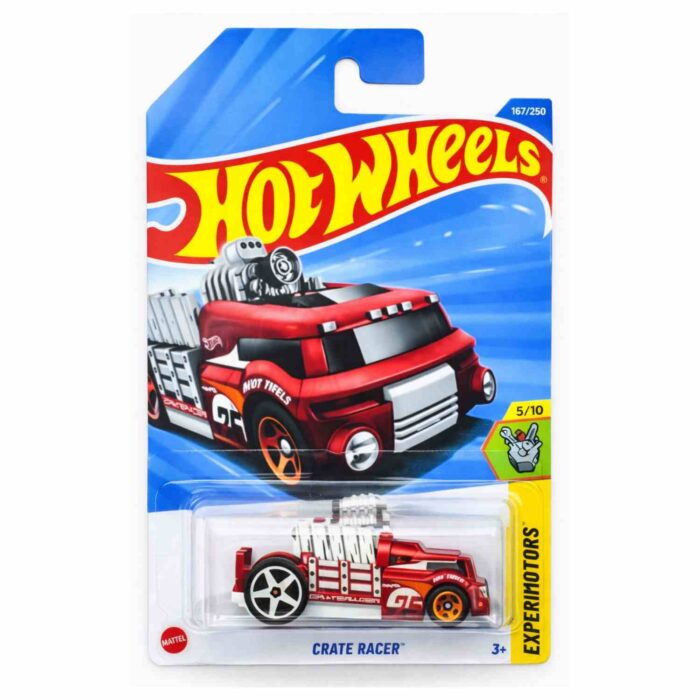 Premium Hot Wheels Crate Racer toy car with a bold wooden-crate racing design