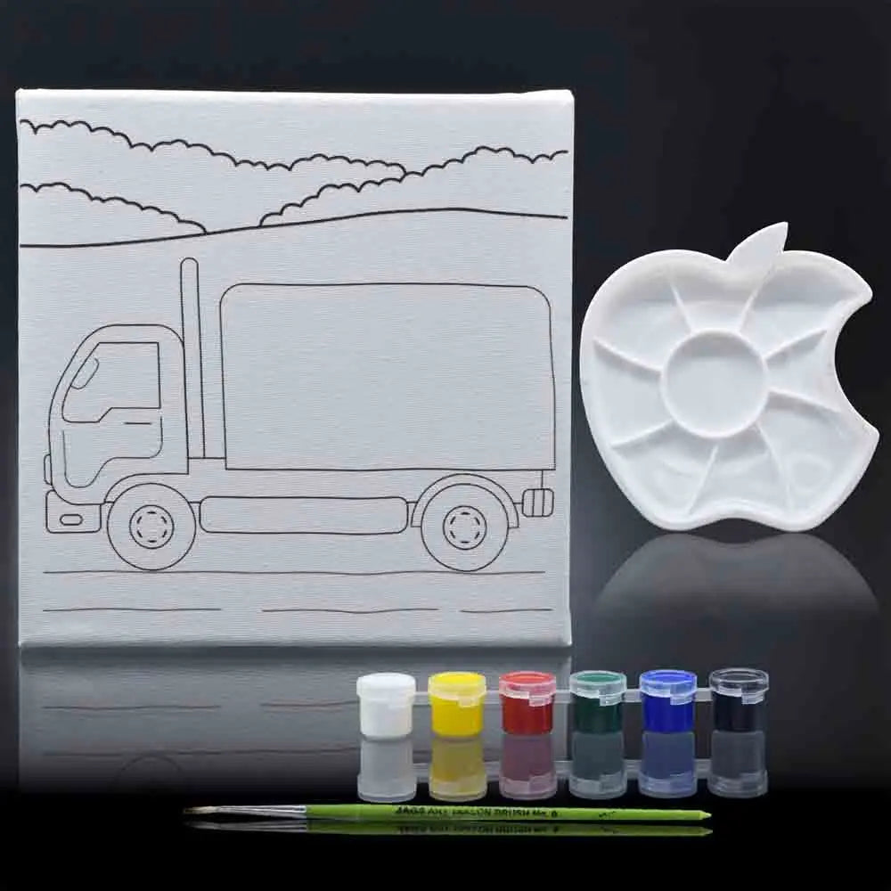 PAINTING KIT FOR BEGINNERS: This kit comes with all materials you need to create one complete canvas painting. It includes a pre-printed canvas board (8 x 8 inches), 6 Tempera paints, 1 Pallete, and 1 Brush.