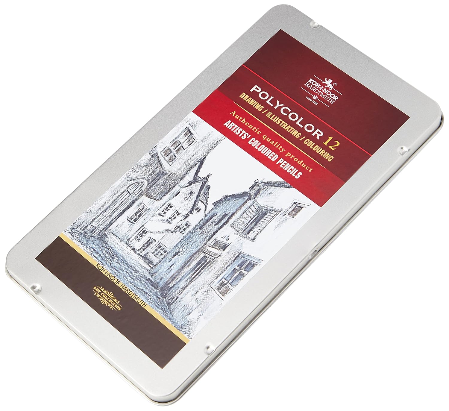 Kohinoor Hardtmuth Polycolor Artists Coloured Pencils – Grey Line Set Of 12 In Tin Box