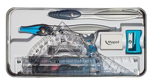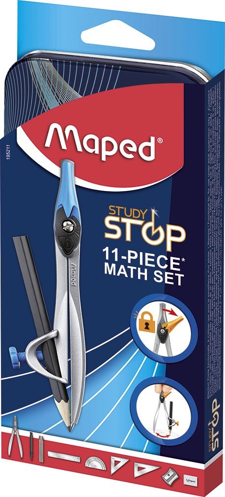 Study -stop 11 pieces of accessories, Maped is a family-owned French company that has spent 70 years basing its development on its industrial expertise, Ideal for carrying your geometry tools in your school bag.