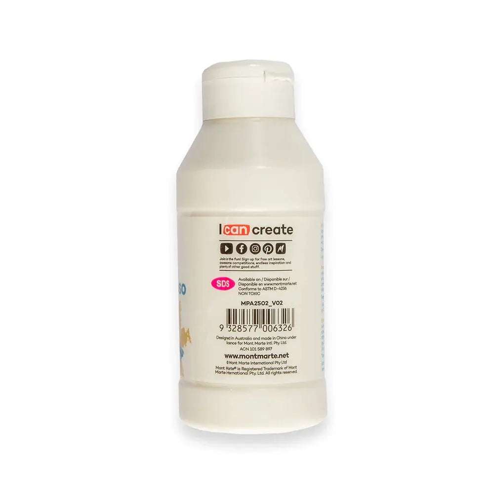 Easily tintable with Mont Marte acrylic paints and mediums, enabling you to customize your gesso with any color.