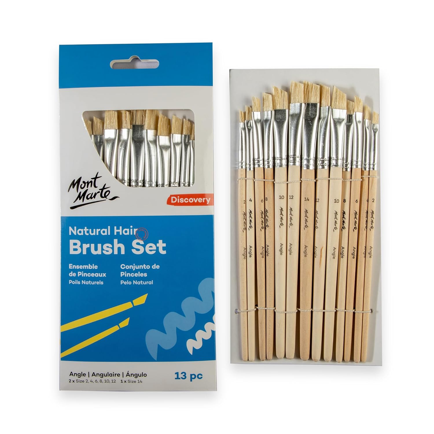 Mont Marte Natural Hair Flat & Angle Combo Brush Set 13
