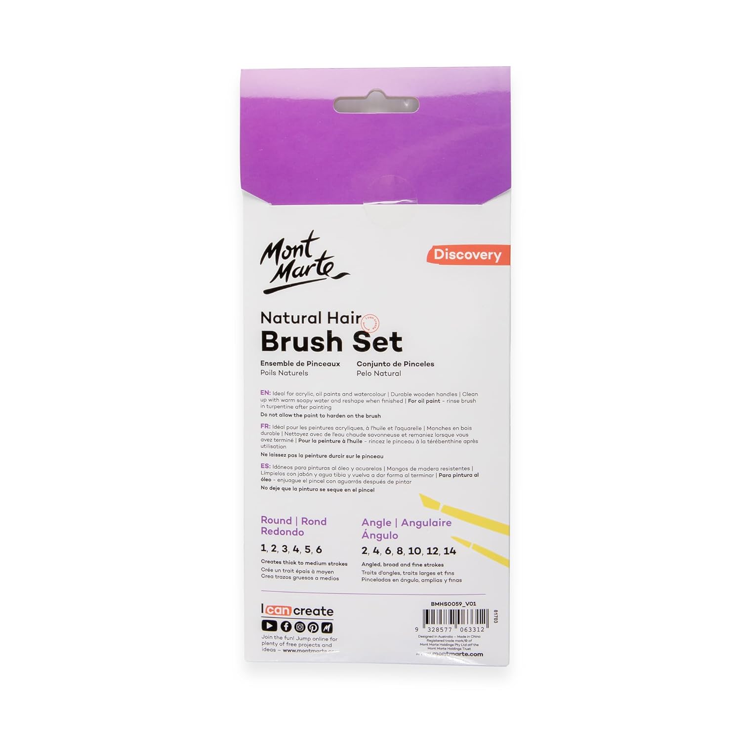 Mont Marte Natural Hair Rounf & Angle Combo Brush Set 13