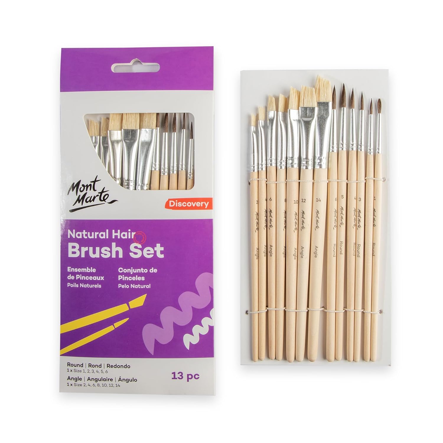 - Natural Hair Art Brush Set Round and Angle Discovery 13pc